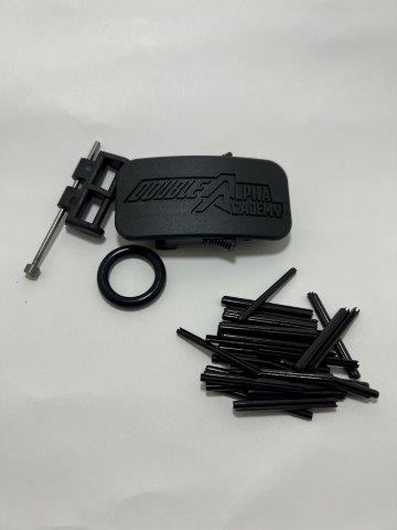 Buckle kit consists of Lynx buckle, spare o-ring ,a bag of 50 roll pins and a steel punch tool.