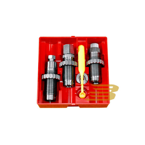 Lee 380 Auto Pistol 3-Die Set includes Carbide Full Length Sizing Die, Powder Through Expanding Die, Bullet Seating Die, Universal Shell Holder, Powder Dipper and Instructions/Load Data.