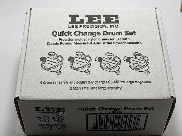 The set comes with; two small drums for charging 25 ACP to 223 Remington and two large drums for charging the 223 Remington to Large Magnums. Also include an insert to allow reduced capacity charging similar to smaller drum.